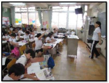 3年生の学習の様子をご紹介します。社会科で、自分たちの住むまち、大阪市の事柄についてのまとめをしています。市章(みおつくし)はどんな形?西成区に隣接する区は何区?上町台地にある史跡は?などの問いに、子どもたちは答えていきました。