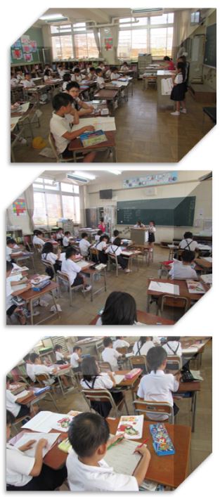 3組は、算数のプリントの答えあわせをしています。係の子どもの言う答えに合わせて、各自が点検をしていっています。
