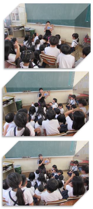 2組は、道徳の学習です。先生に「泣いた赤おに」の紙芝居を読んでもらっています。この後、子どもたちは赤おにや青おにの気持ちを思いやって、思ったことを書いていきました。