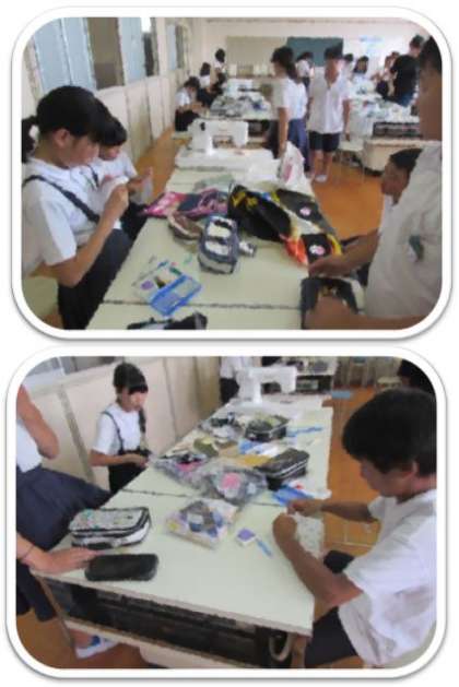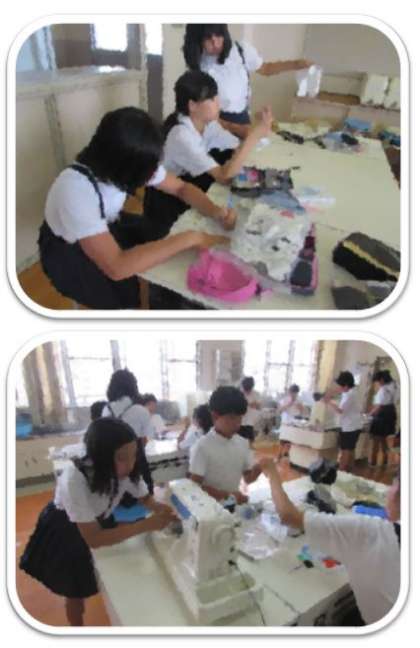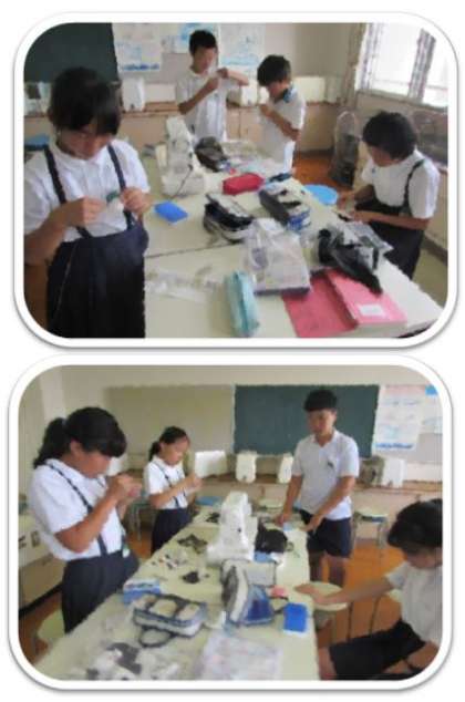 6年生の家庭科の学習の様子をご紹介します。エプロンづくりの仕上げをしています。ミシンの使い方などを教え合って、完成させていきました。