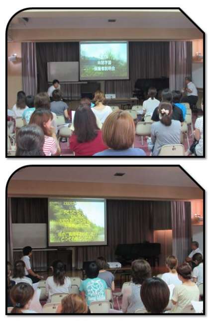 本日4時より、3階の第2音楽室で、林間学習保護者説明会を行いました。プリントでの説明と、昨年の林間学習の様子を写したDVDをご覧いただきました。