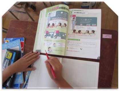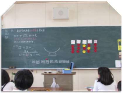 3年生の算数の学習の様子をご紹介します。今日は、わり算で、あまりの出る場合の計算の仕方を考えました。そして、「わりきれる」「わりきれない」という言い方を学びました。