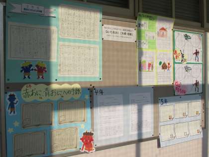 1学期、「信頼・友情」の育成をめあてとして、全学年で「泣いた赤おに」に取り組みました。赤おにや青おにの行動を、それぞれの学年に応じて、自分と置き換えてみたり、自分のこれまでの経験と照らし合わせるなどして、考えていきました。