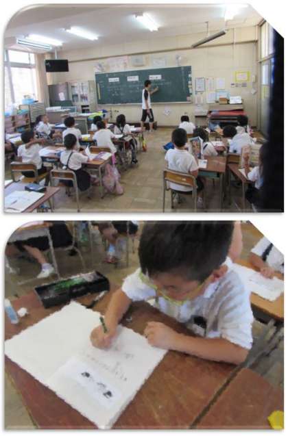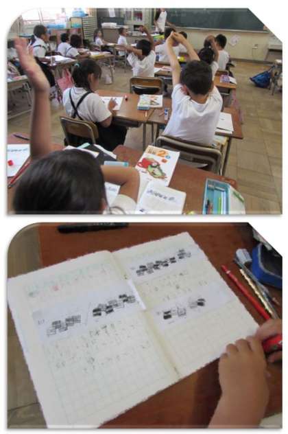 2年生の学習の様子をご紹介します。1組は、算数「計算のしかたをくふうしよう」です。50+70、120−30などの計算を、それぞれ10のかたまり、100のかたまりいくつ分として考えていきました。