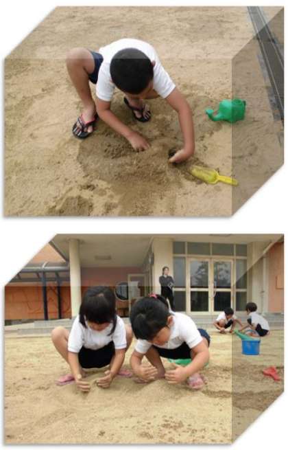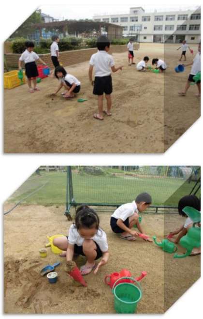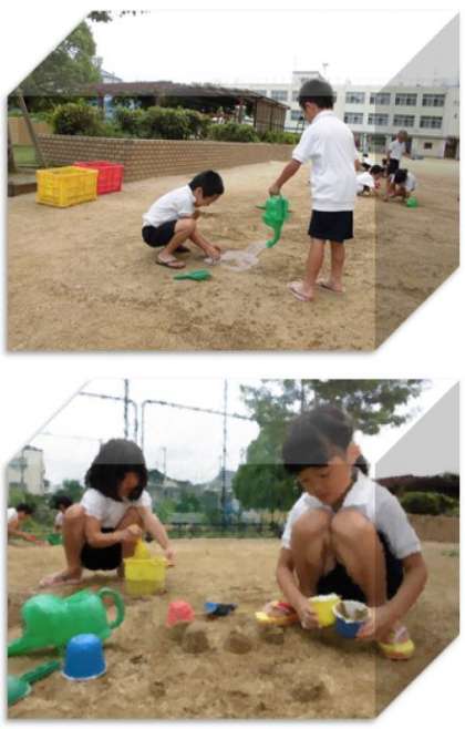 1年生は今日の生活科で、運動場に行き、どろんこ遊びをしました。土に水を混ぜて、山を作ったり、トンネルを掘ったり、お団子を作ったりしました。