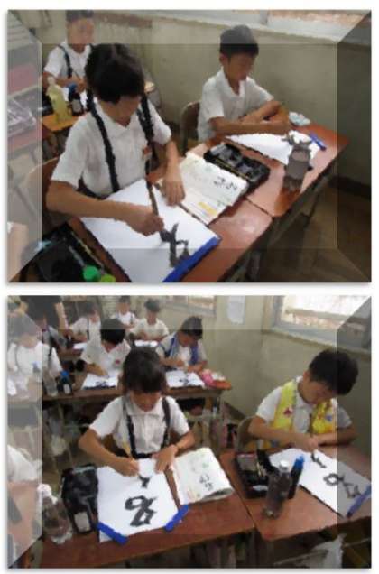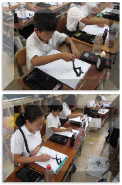 4年生の書写の学習の様子です。今日は、「名作」と書きました。一画ずつ、ゆっくりと書いていきました。