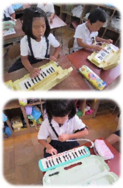 2年生の学習の様子をご紹介します。この後、音楽の学習ということで、2年生の子どもたちが鍵盤ハーモニカの練習をしています。