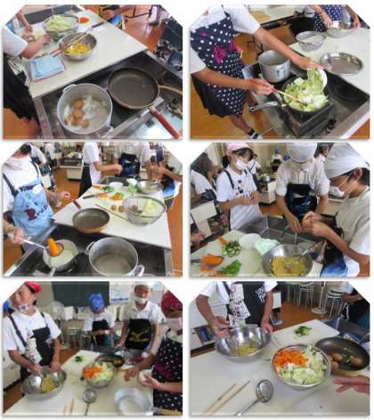 本日、6年2組が調理実習を行いました。今回の調理は「朝食にあうおかず」作りです。栄養バランスや予算、そして調理にかかる時間を考えて、献立を考えました。さすが6年生。手際よく、そして班のメンバーで協力して、安全に調理をすることができました。