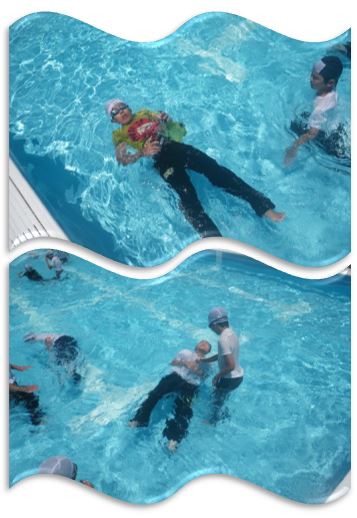 本日、6年生は着衣泳を行いました。万が一、水に落ちた時に、あわてずに対応できるようにとの狙いから、着衣泳は行います。服を着て水に入ると、服が水を吸って重くなり、また、体にまとわりついて動きにくくなることに気づきました。