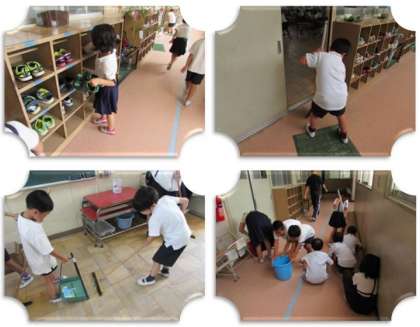 給食の後、全校一斉清掃です。画像は、2年生の清掃の様子です。皆で協力して、ていねいに清掃をしています。