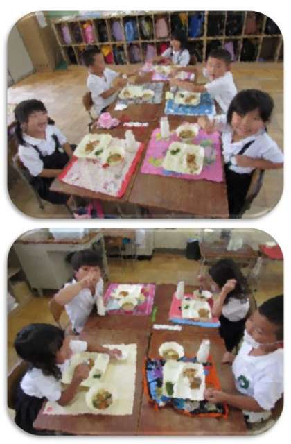 本日は1学期最後の給食でした。本日の献立をご紹介します。本日の献立は、ご飯、豚肉とじゃがいもの煮物、オクラの甘酢漬け、紅鮭そぼろ、牛乳でした。