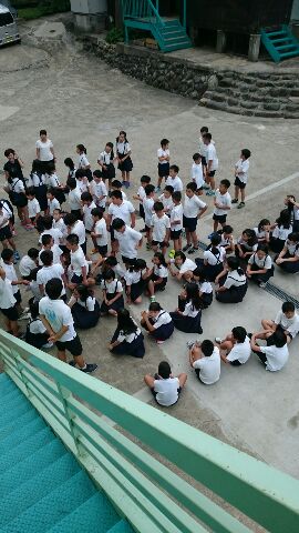 避難訓練でした。 遅い班は、どこや?
