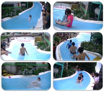 ウォータースライダーは、子どもたちに大人気でした。何度も何度も並んで、滑りました。水しぶきが上がり、子どもたちの歓声が沸きます。