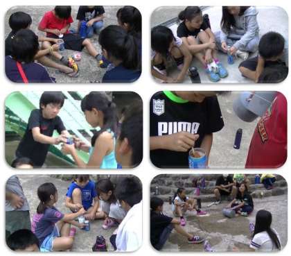 カレーの後は、アイスクリーム作りです。材料を容器に入れ、30分間、ひたすらごろごろと転がします。皆で協力しないと、おいしいアイスクリームはできません。
