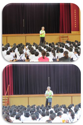 生活指導担当の先生からは、今月のめあてについての話がありました。今月のめあては、「すすんであいさつをしよう」です。