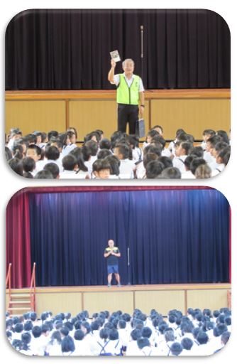 初めに、学校長の話です。今日、「大阪880万人訓練」があります、という話、夏休みに大阪市立美術館に行き、「デトロイト美術館展」を見てきて、ゴッホやルノワール、モネ、ピカソなどの作品を見てきました、という話(デトロイト美術館展は9月25日まであります)、校内にあったごみの話から自分たちの学校を自分たちで美しくしましょう、という話、林間で5年生が、カレー作りの後、鍋をピカピカに磨き、ほとんど無い「一発合格」や、貸した時よりもきれいにする「超合格」が今年もあったこと(これらは千本小学校の伝統になりつつあります)の話がありました。