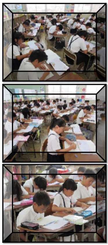 4年生の学習の様子をご紹介します。1組では、漢字のテストを行っています。皆、しっかりと覚えているかな。