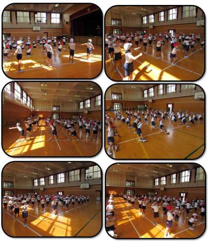 3年生の団体演技(ダンス)の練習の様子です。曲のテンポの速さにも慣れ、次はどこをどのように工夫すれば更によくなるか、考えながら踊りました。