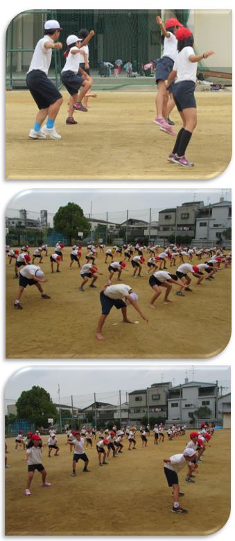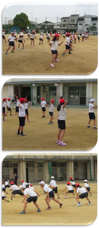 5年生が運動場で団体演技の練習に取り組んでいます。5年生の団体演技は「南中ソーラン」です。ニシン漁の厳しさを表現できるよう、全身に力を入れて頑張っています。