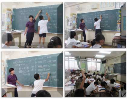 3年生の算数の学習の様子です。「大きな数」の学習で、等号・不等号の学習をしました。7けた、8けたの数も、しっかりと数を読んで、大小を比べました。