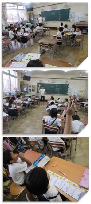 2年生の国語の学習です。新出漢字の学習をしています。今日、学習しているのは「牛」と「食」です。「牧場などで、牛を見たことがありますか?」