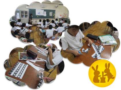 授業の後半、月の図を月齢順に並べて綴じました。指でぱらぱらとめくっていくと、月の形の変化がよくわかりました。