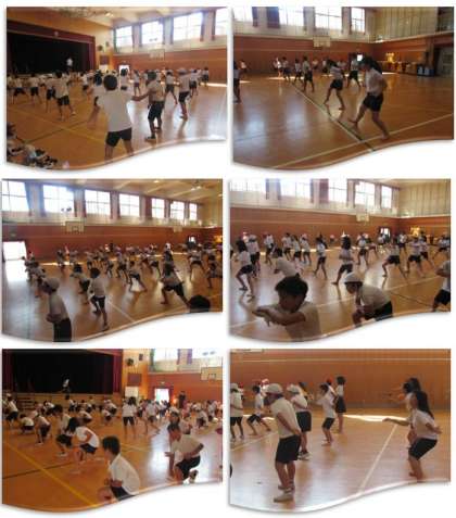 5年生の運動会の練習の様子です。5時間目、体育館で南中ソーランの練習を行いました。力強く、大きな声と、大きな動きで表現できてきています。