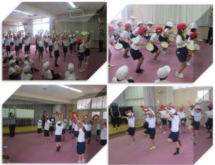 3年生の運動会の練習の様子です。午前中、運動場が使えなかったので、音楽室で練習を行いました。1組、2組と交互に練習し、気づいたことを交流していきました。その後、体育館に移動し、力いっぱい踊りました。