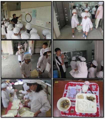 本日の給食の献立をご紹介します。本日の献立は、ご飯、肉じゃが、焼きナスの味噌だれかけ、もやしのゆずの香和え、牛乳でした。