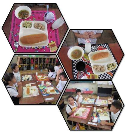 本日の給食の献立をご紹介します。本日の献立は、コッペパン、アプリコットジャム、鶏肉のから揚げ、冬瓜の中華スープ、キャベツと三度豆の胡麻和え、牛乳でした。