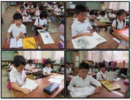 水曜日の朝、読書タイムの様子です。1年生(画像1・2段目)、2年生(画像3・4段目)も、自分で選んだ本を、集中して読んでいます。