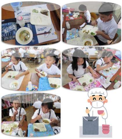 本日の献立は、ご飯、プルコギ、トック、あっさりきゅうり、牛乳でした。