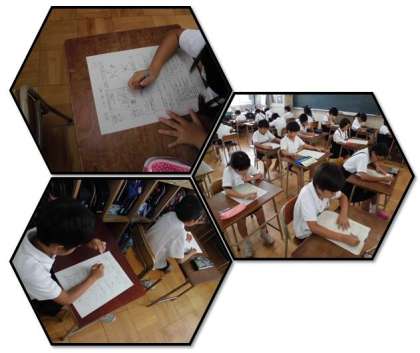 4年生が理科のテストに取り組んでいます。今日のテストは「星の動き」です。夏の大三角を構成する星座や、一等星の名前を答えていきました。