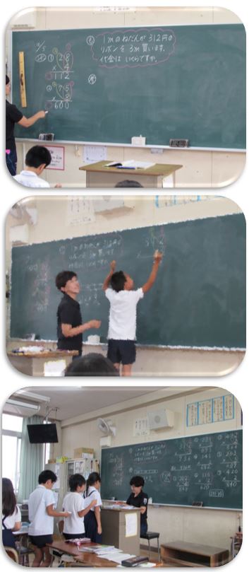 3年生の算数の学習です。今日は3けた×1けたの計算を学習しました。「簡単や」という声が、子どもたちから聞こえてきました。