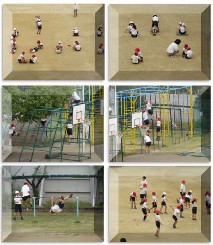 準備運動として体操をした後、遊具を使って、アスレチックに取り組みます。