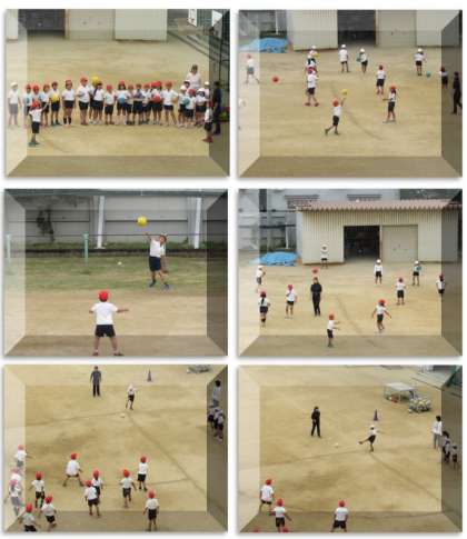 今日の体育は、キックベースです。4チームに分かれて、ゲームをしました。