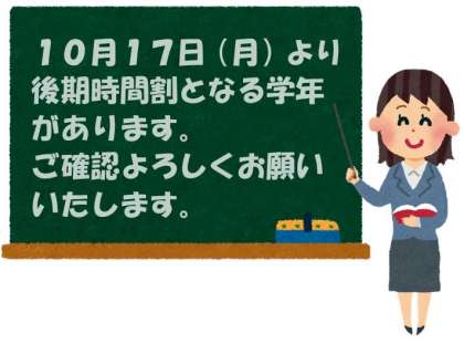 10月17日(月)より、後期時間割となる学年があります。ご確認ください。
