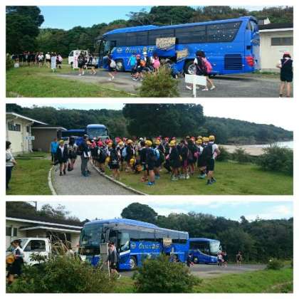 志摩自然学校に無事到着しました。 係の方に説明をうけています。