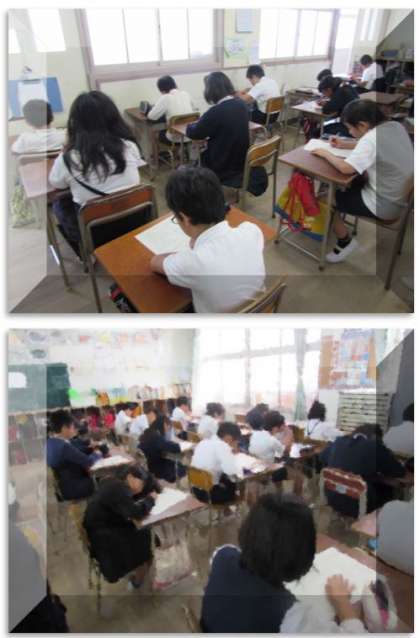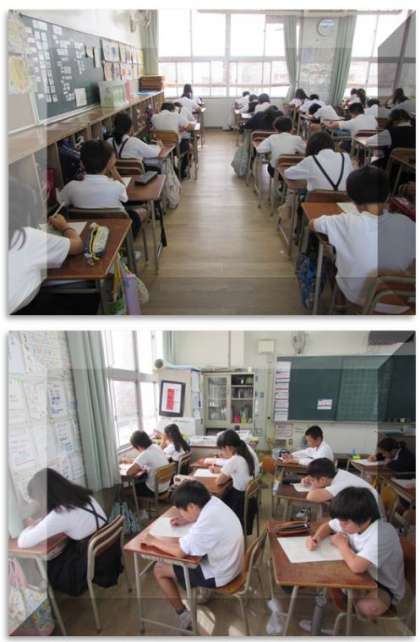 5年生の算数のテストの様子です。今日は、分数のテストを行いました。分母の異なる分数を、通分することで大きさを比較する問題がありました。