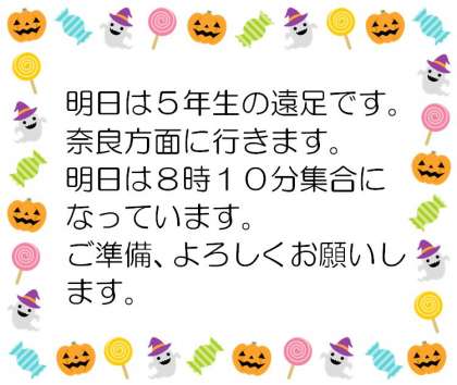 明日は5年生の遠足です