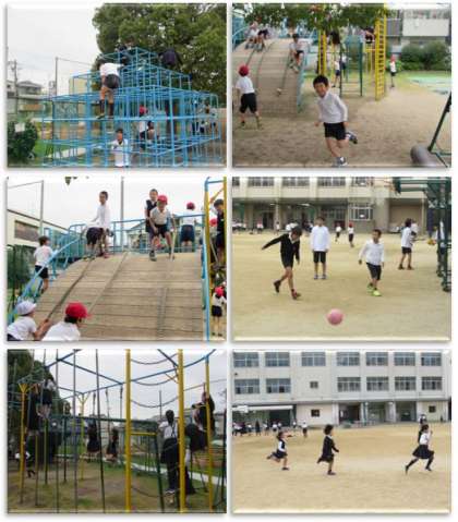 今日の休み時間の運動場の様子です。子どもたちが元気に遊んでいます。