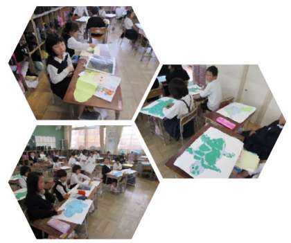 2年生の図画工作の学習です。海遊館で見た生き物を1つ選び、画用紙に大きく描きました。