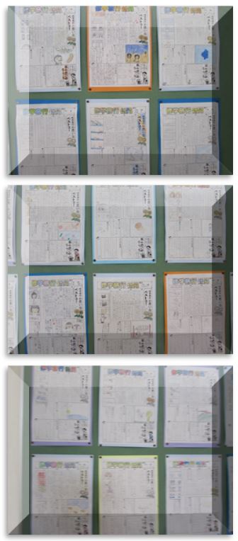 3号階段の3階と4階の間の踊り場の掲示板に、6年生の修学旅行新聞が掲示してあります。どの新聞にも、楽しかった修学旅行の思い出があふれています。土曜授業でお越しの際に、ぜひご覧ください。