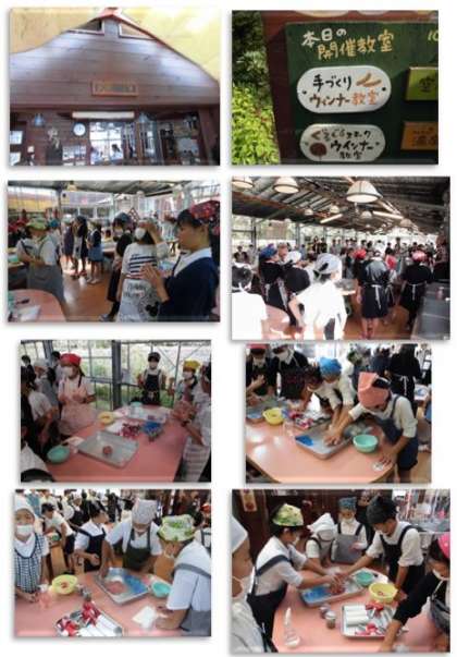 工房に行き、皆でウインナー作りをしました。グループで協力して、作っていきます。できたウインナーは、お土産として持ち帰りました。お味はいかがでしたか。