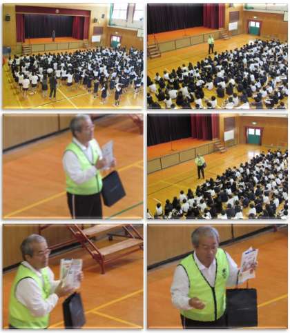 続いて、生活指導担当の先生からの話です。明日から11月になるので、11月の生活のめあてについての話をしました。11月のめあては「もちものを大切にしよう」であり、持ち物を大切にするため、自分の持ち物には名前を書いておきましょう、という話をしました。