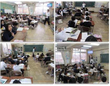 2年生の国語の学習です。「ビーバーの大工事」という説明文で、お話の舞台の北アメリカってどこなんだろう、とテレビ画面を使って確認しています。