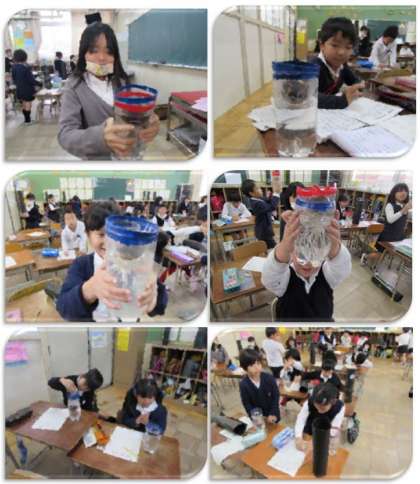 2年生の生活科の学習です。水栽培をしているヒヤシンスの観察をし、記録をしています。