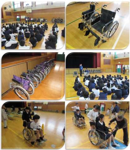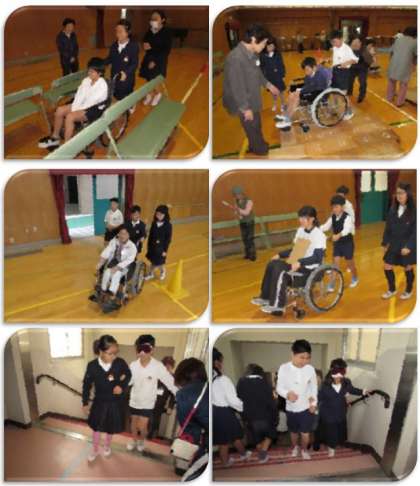 本日、4年生は車いす・アイマスクの体験学習を行いました。多くのゲストティーチャーの方にお越しいただき、2時間、学習をしました。