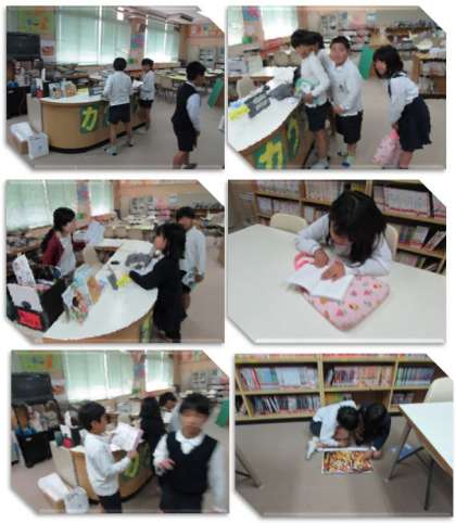 火曜日は図書館開放の日です。休み時間になり、図書館へ行ってみると、3年生の子どもたちが大勢来ていました。