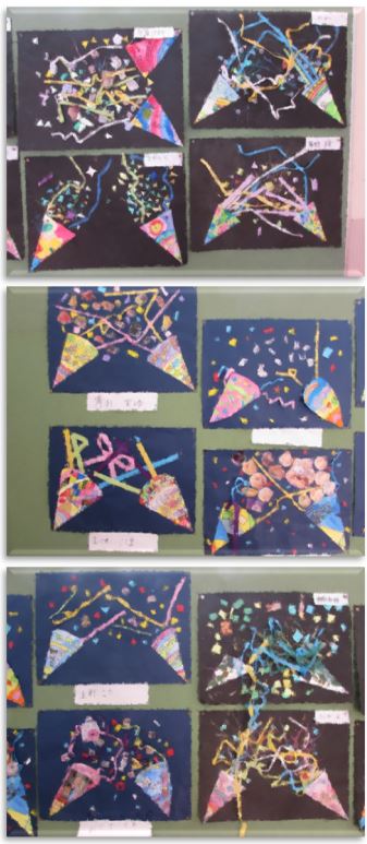11月18日(金) 3年生の作品です。クラッカーから、さまざまなものが飛び出しています。